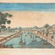 5 Vedute ottiche francesi raffiguranti vedute fantastiche di Napoli, Venezia, Palmira