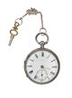 Orologio da tasca con carica a chiavetta da uomo in argento con punzoni Londra 1880. Meccanica a conoide con scappamento ad ancora, bilanciere anulare e spirale piana