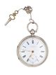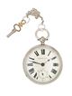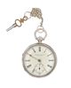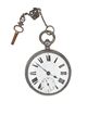 Orologio da tasca da uomo in argento con carica a chiavetta con punzoni Chester 1876. Meccanica a conoide con scappamento ad ancora, bilanciere anulare e spirale piana