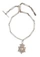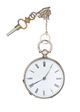 Francia - Orologio a crocefisso in argento traforato e filigrana d'argento con raffigurazioni floreali e bibliche incise. Carica a chiavetta, con meccanica a scappamento a cilindro e bilanciere anulare con spirale piana. Catena in argento sterling con chiavetta