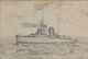 A. R. Dodson - Disegno a matita raffigurante un incrociatore da guerra della marina inglese