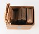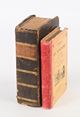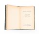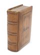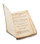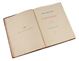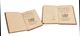 Scatola sorrentina a forma di libro in legno intarsiato e pelle, con all'interno un piccolo scrittoio
