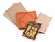 Album porta foto con legatura in pelle impressa con raffigurazioni floreali e geometrice, borchie e chiusura in ottone