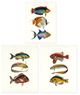 Tre stampe anonime acquerellate raffiguranti ognuna tre pesci